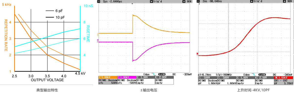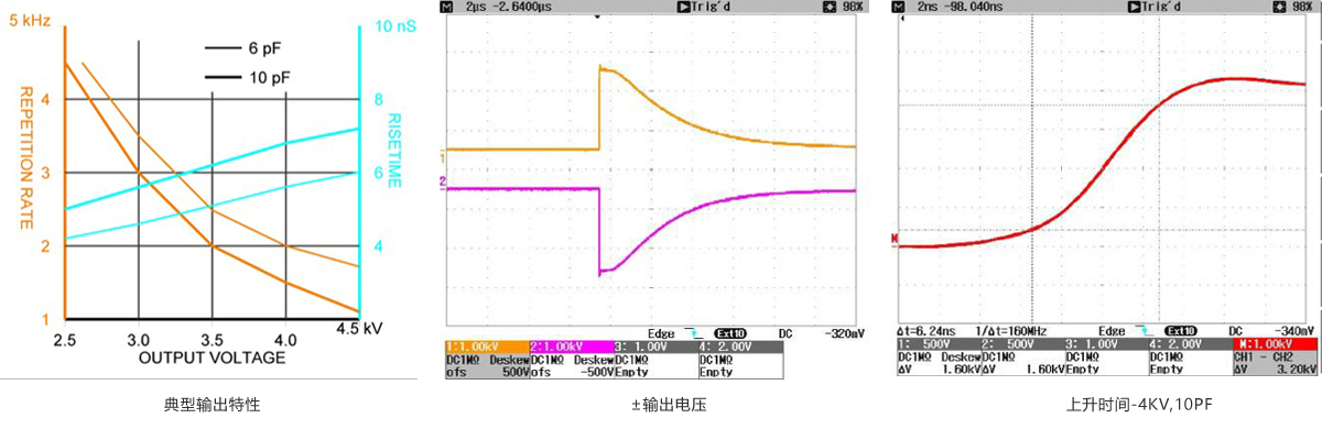 1. 高压电流要求由脉冲宽度和重复频率决定。上升和下降时间随输出电压而变化;电压越高,上升和下降时间越长。