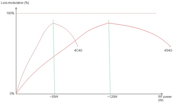 调制损耗 在射频输入功率50W时 >  80% 在射频输入功率45W时 >  85%