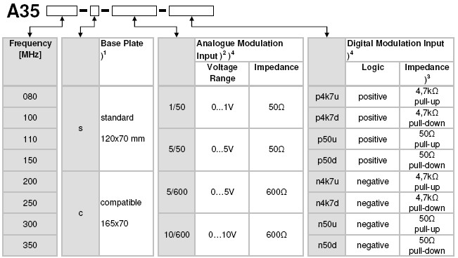 射频输出频率*** [MHz] | 40-< 80 | 80-< 140 | 140-< 200 | 200-350 |