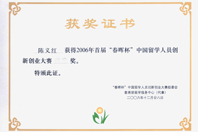 教育部首届“春晖杯”中国留学人员创新创业大赛颁奖活动于12月28日在广州举行,我司董事长陈义红博士荣获优秀奖。