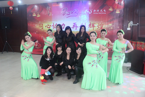 在工作汇报结束后,随着2位青春、靓丽的主持人的登台拉开了文艺表演的序幕。时下流行的江南style、自编自导的孔雀舞,意气风发的表演者给现场带来了不一样的火热气氛。各部门的伙伴们带来了形式各异、让人目不暇接的表演,舞蹈、唱歌、小品、舞台剧等,中间还穿插了新颖别致的游戏,大家用心投入其中,呈现出一场盛大的娱乐盛宴。这些不仅给大家带来了欢声笑语同时也让同事之间彼此的心更加贴近。为了让大家尽兴而归,年会上自然也少不抽奖这个环节,随着三等奖、二等奖、一等奖的抽取不断掀起年会的高潮。公司领导与员工亲情互动、激动人心的抽奖活动,让歌声、掌声、欢呼声一直在会场上荡漾。最后大家欢聚一堂共进晚餐,整个年会在和谐、温馨、欢乐的气氛中圆满结束。