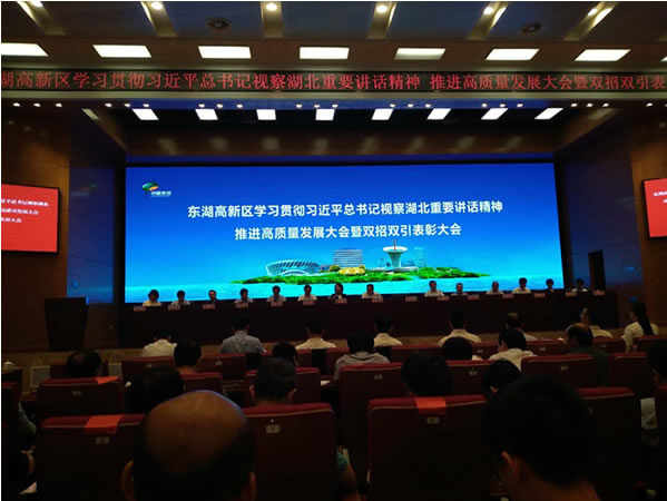 2018年5月14日,东湖高新区召开《学习贯彻习近平总书记视察湖北重要讲话精神 推进高质量发展大会暨双招双引表彰大会》,会上聘任了招才大使、招商大使各5名,对2017年度"双招双引"工作先进单位和先进个人予以表彰,并发布《东湖高新区关于贯彻落实习近平总书记视察湖北重要讲话精神加快推动高质量发展的实施意见》(试行)(征求意见稿),即《中国光谷推动高质量发展20条》。我司董事长陈义红博士被聘为"光谷招才大使",共谋光谷发展。
