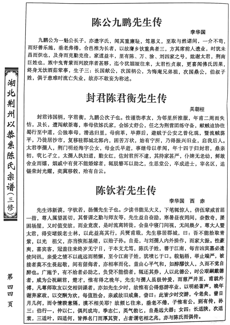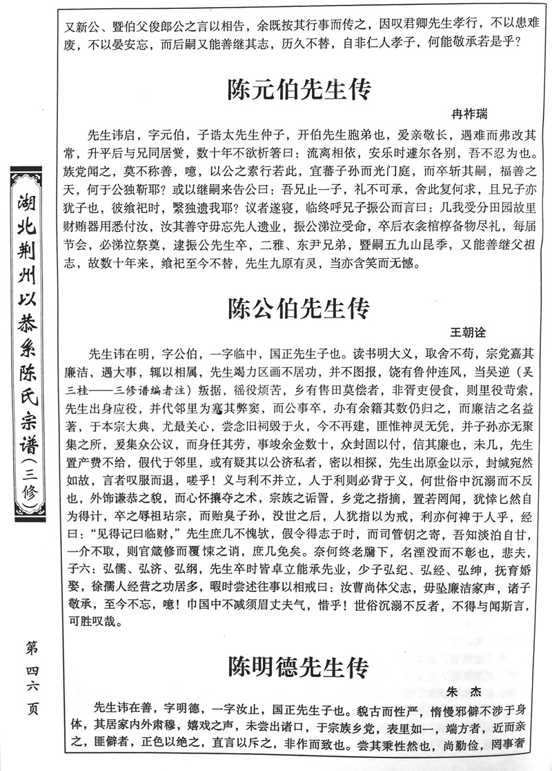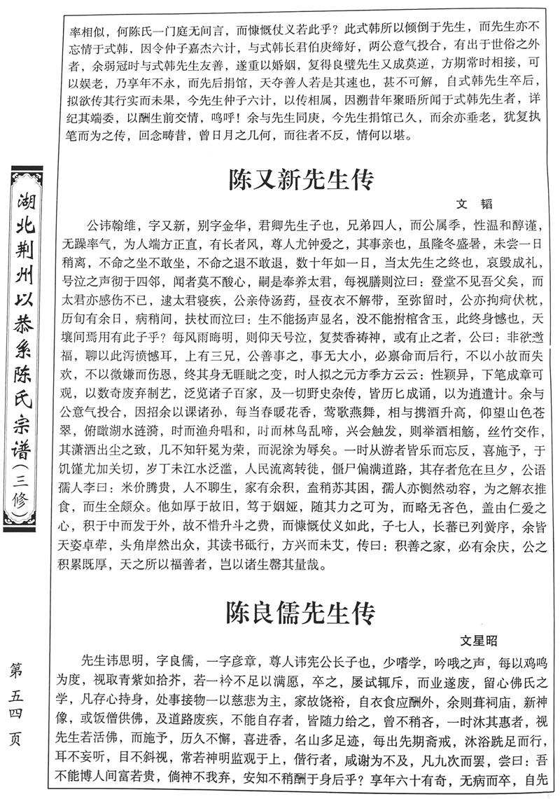 • 荆州以恭系陈氏宗谱“三修谱”序(2002年)(1-5页)