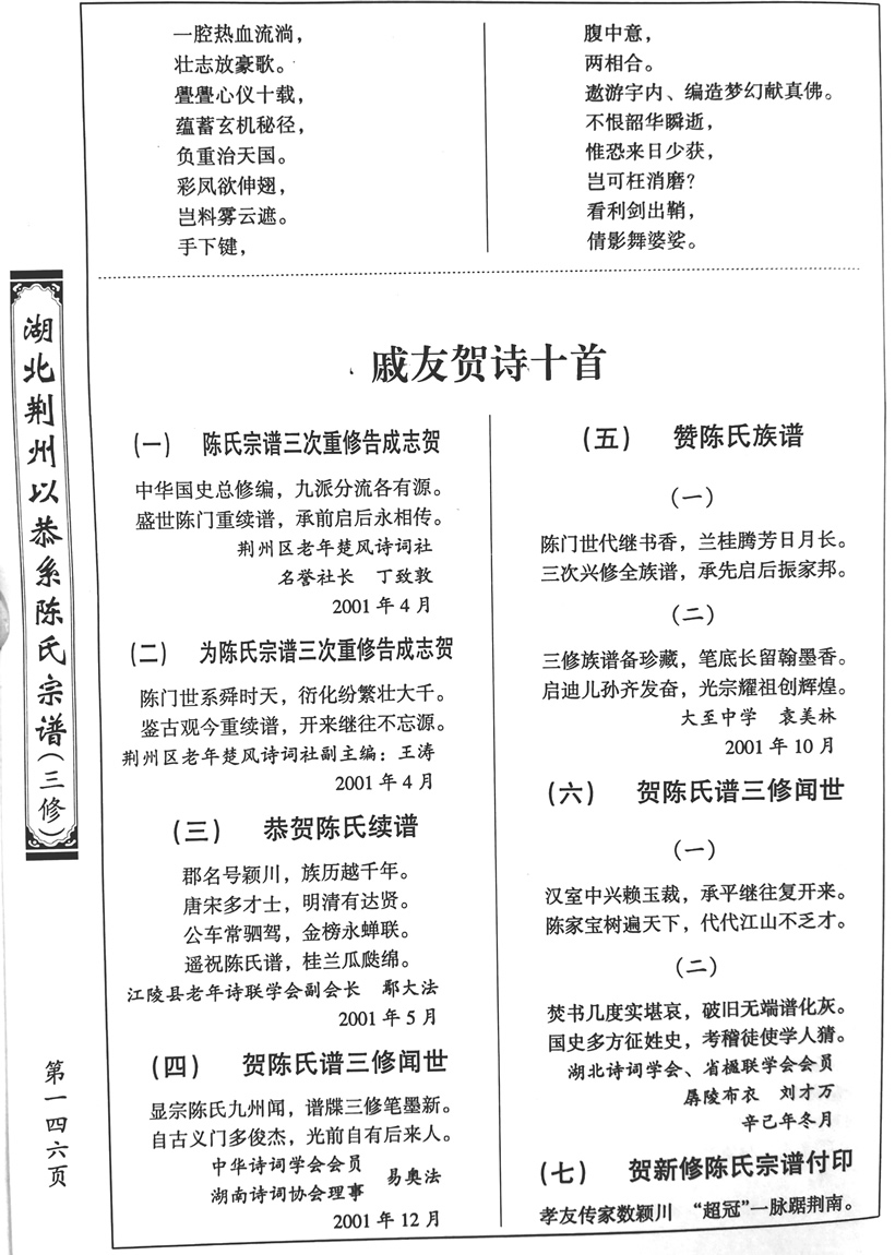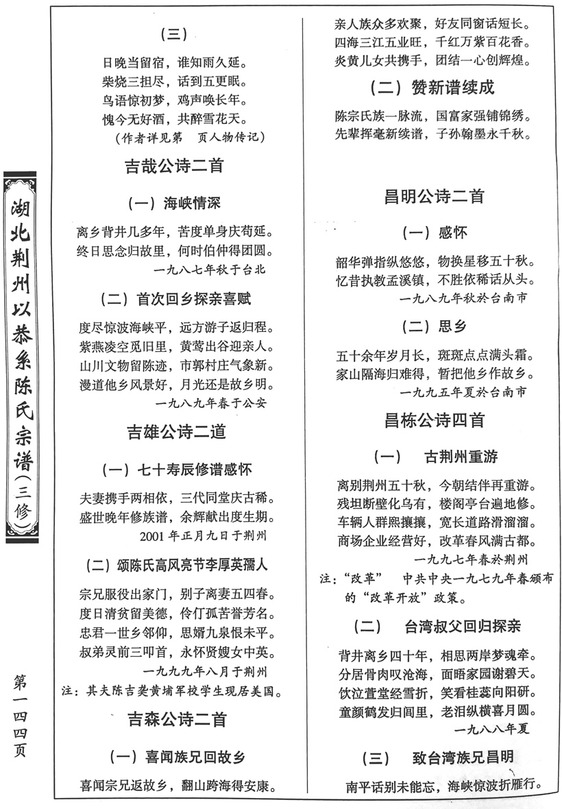 • 荆州以恭系陈氏宗谱“三修谱”序(2002年)(1-5页)