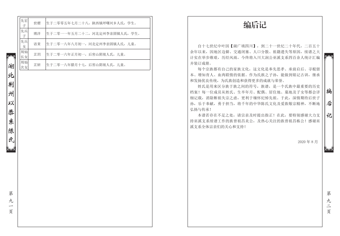 • 6. 以恭系巫溪支谱-泽柱公世系图、世系表