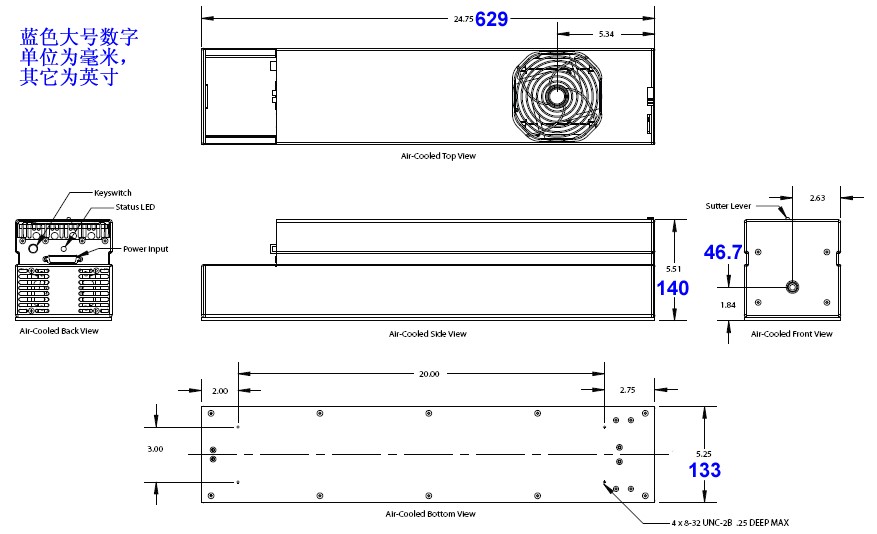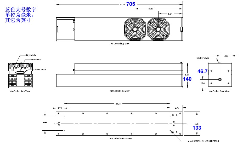 所有激光器都是风冷激光器,两种结构是OEM基本型、OEM标准型。