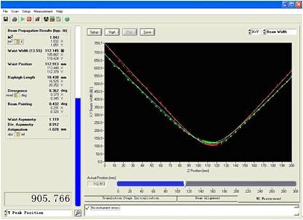 光束传播特性参量的测量是基于高分辨率光强和波前图像的实时测量。照相机CCD接收两个轻微散焦的光强分布图像,利用这两个图像以及他们之间的差异来计算波前。由波前特性,可以直接的获得光束的传播特征参量,但是需要繁琐的计算过程。